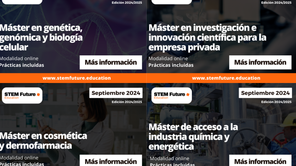 ToggleConcretamente, hemos abierto el plazo de matriculación de los másteres de cosmética y dermofarmacia; genética, genómica y biología celular; industria química y energética e investigación e innovación en la empresa privada, todos ellos con prácticas garantizadas en empresa.