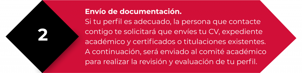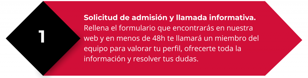 Para acceder al máster es necesario superar un proceso de admisión. De esta forma garantizamos que la formación es adecuada a tu perfil y el alumno interesado cumple los requisitos de acceso.